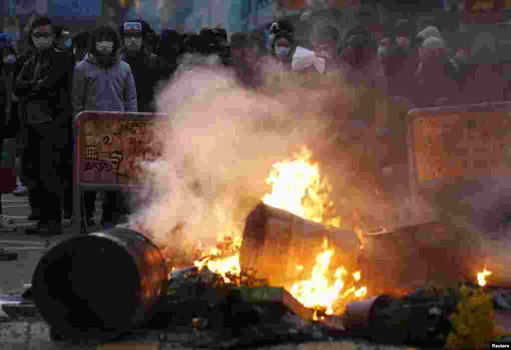 В Гонконге ночью не утихали протесты против сноса нелегальных закусочных в районе Вонкок. Предприниматели кидали в полицию камни, поджигали мусор. По последним данным, за ночь арестовали три человека