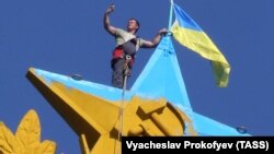 20 августа 2014 года неизвестные вывесили на шпиле московской высотки на Котельнической набережной украинский флаг и закрасили синей краской верхушку звезды. Спустя несколько часов после этой акции флаг сняли, полиция задержала четырех подозреваемых – Александр Погребов, Алексей Широкожухов, Евгений Коротков и Анна Лепешкина.