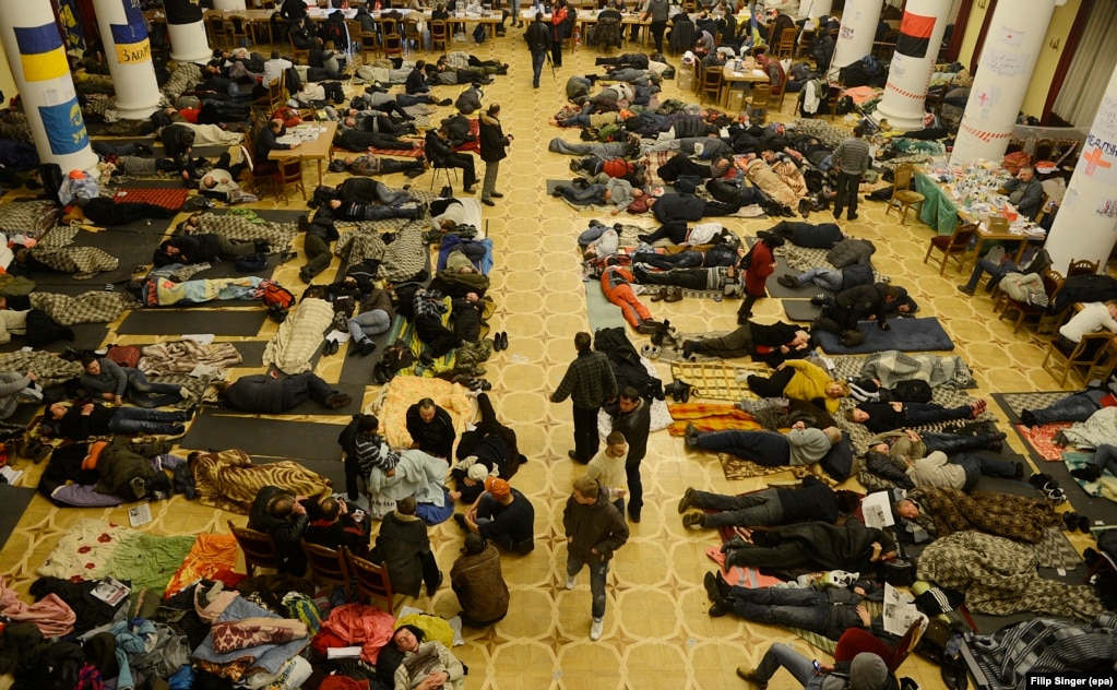 По данным Генпрокуратуры, во время Евромайдана пострадали 2,5 тысячи человек, 104 из них погибли. Погибших участников протестов стали называть Небесной сотней. По данным МВД, с 18 февраля по 2 марта 2014 года при исполнении служебных обязанностей в центре Киева погибли также 17 силовиков.