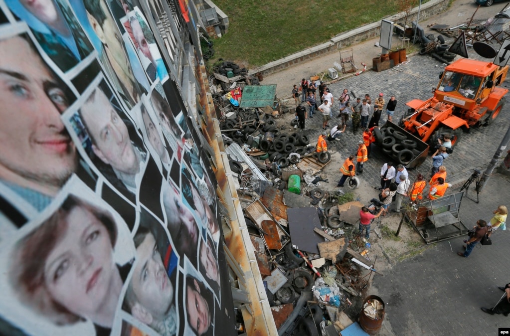Люди на Майдане Независимости прощались с погибшими активистами.